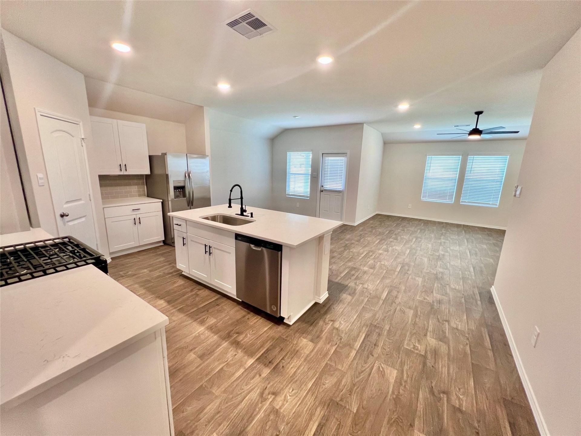 Tons of upgrades including white quartz kitchen countertops with upgraded single sink, ceiling fans, mirrors, gutters and more! This house doesn't look like any other in the neighborhood!