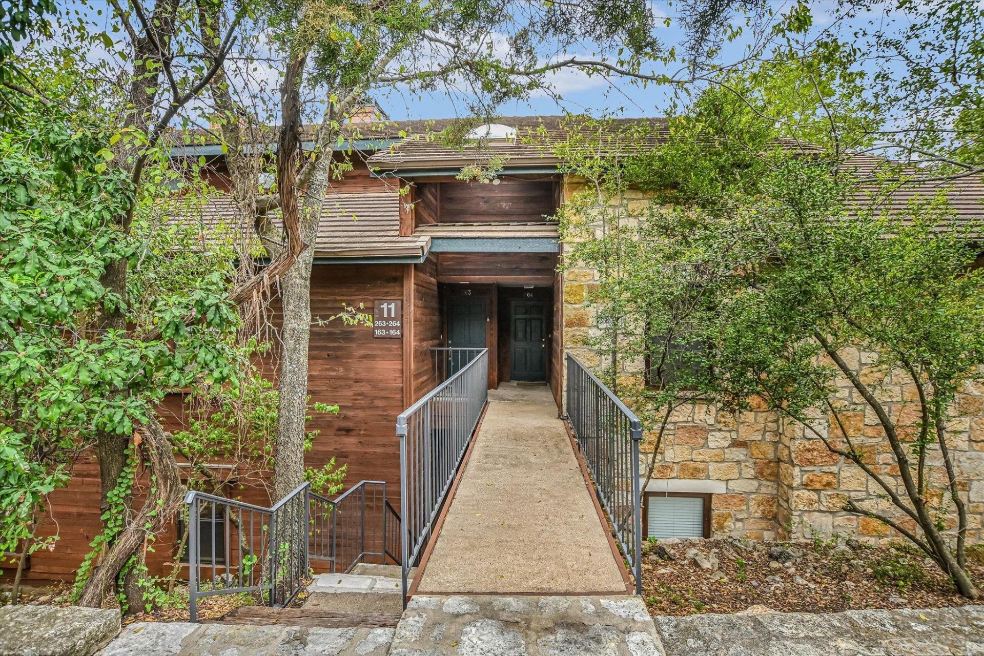 Welcome to your serene retreat at Stillhouse Condominiums! This unique, private, and peaceful 1-bedroom condo features stained concrete floors and a beautiful greenbelt view that brings nature right to your doorstep. This is not a cookie-cutter unit that has been upgraded to the latest trend. Instead, this unit blends with the natural preservation that was designed by Larry Peel, the original developer/architect. Larry's Frank Lloyd Wright-style design is a community nestled in a rock canyon on the edge of an 18-acre preserve in North Austin. Enjoy your morning coffee or tea on a private balcony while watching deer pass by in your own slice of tranquility in the city. Recent upgrades don't contrast with the greenbelt outside (new bathroom tile, toilet, paint, and a new GE washer). This unit is one of only a few on the property that has three parking spots: two reserved uncovered parking spots (229 & 230), plus a covered carport spot (215). Great for multi-car households. Free water, trash, and recycling; you pay for electricity and Internet service. Professional pest control services are provided every quarter. Located in desirable Northwest Hills (78759), you're just minutes from the Domain and the Arboretum, where you will find grocery/specialty stores and popular eateries. All with easy access to Mopac, 2222, 183, and 360; perfect for commuting or exploring Austin.